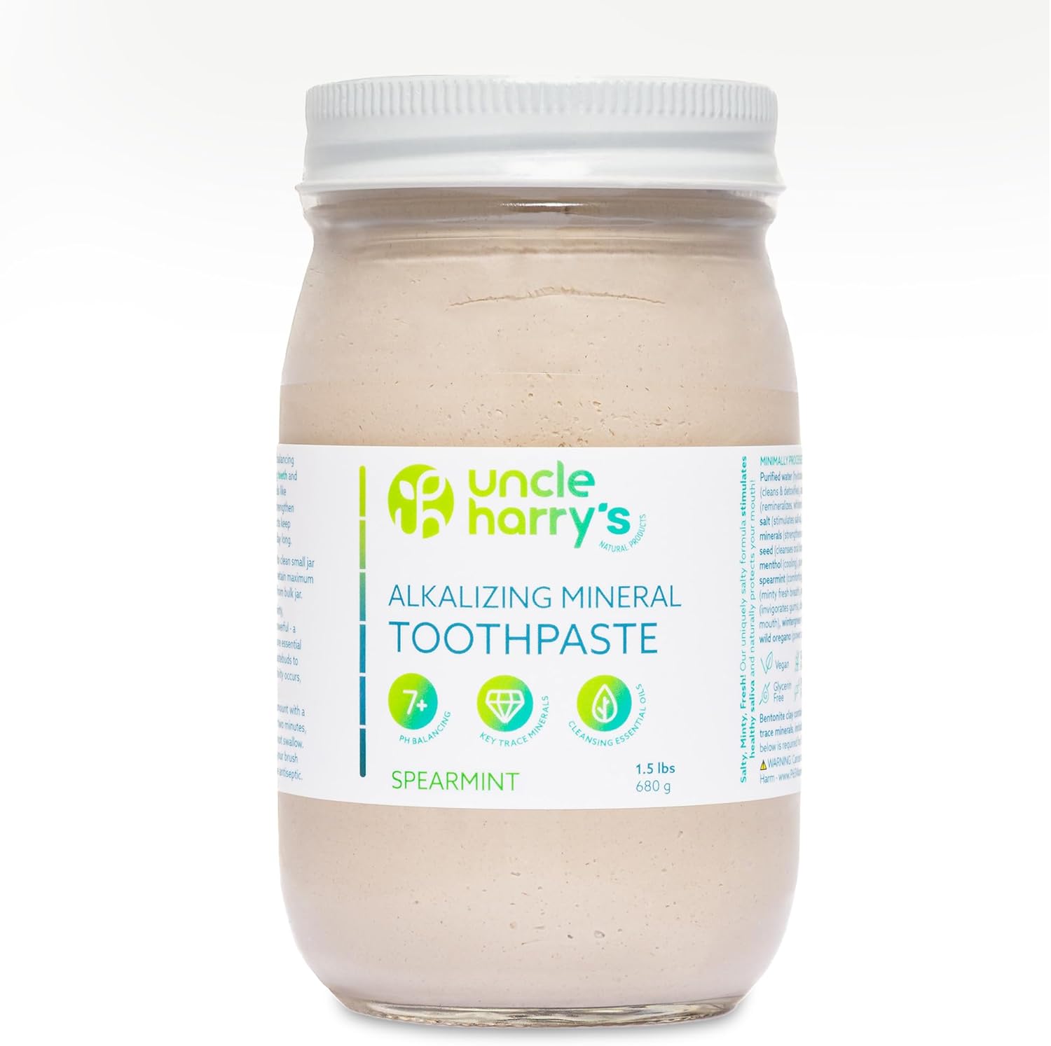 | Active Ingredients | Bentonite clay, calcium carbonate, colloidal silver water, sea salt, alkalizing ionic minerals, mustard seed, natural menthol, pure essential oils of peppermint, eucalyptus, clove, cinnamon, wintergreen, and oregano. Vegan. Free from gluten, glycerin, fluoride, and sweeteners. Leaping Bunny Certified. |